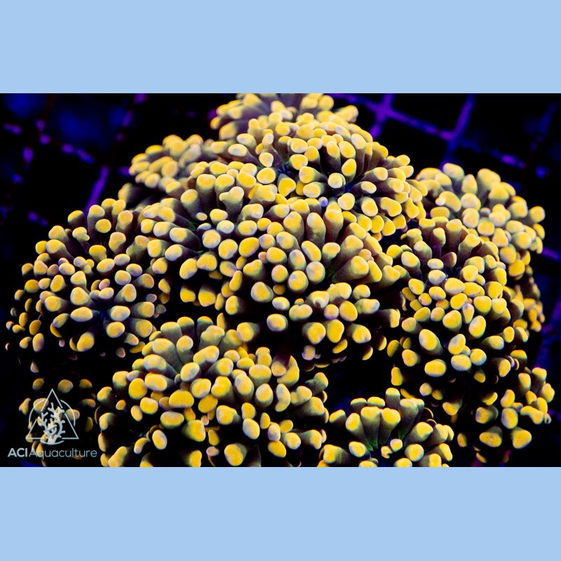 Reign Supreme with the ACI Queen Hammer! This majestic coral commands attention with its deep green stems and crown of vibrant orange and pink-green tips.