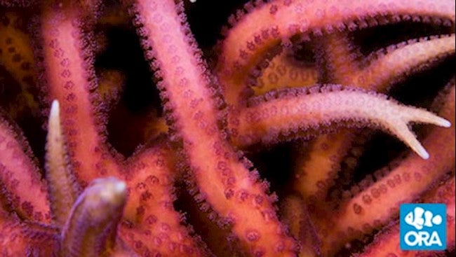 The ORA Pink Birdsnest is a thin branching Seriatopora with luminous pink branches and polyps. Lower branches of Pink Birdsnest colonies tend to grow out then curve downward, something we only see with this Seriatapora variety, giving large colonies a "weeping willow" appearance.