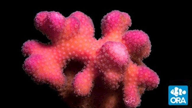 The ORA Pink Stylo is a beautiful intense pink coral with a compact, petite growth form. Its light pink polyps are small and inconspicuous unlike the ORA Purple Stylo and ORA Green Stylo which have larger polyps that give them most of their color. This is a relatively slow growing coral and its branches remain short and bulbous. The pink coloration varies with lighting intensity ranging from dark pink in shaded areas to vivid magenta in high light. While the ORA Pink Stylo achieves best coloration under intense lighting conditions, we strongly advise slow acclimation to new conditions.